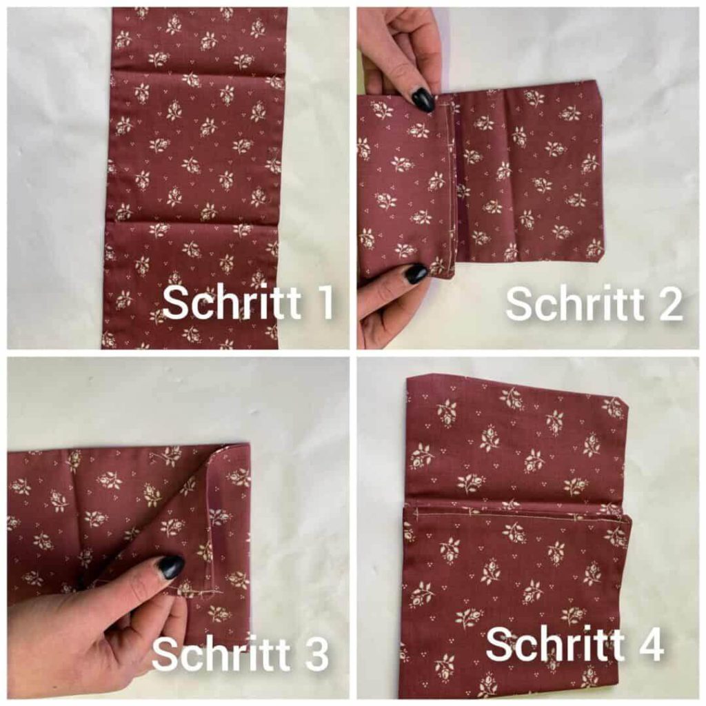 Die Kanten versäumen oder die zwei Stoffteile zusammennähen und auf die schöne Seite drehen.
